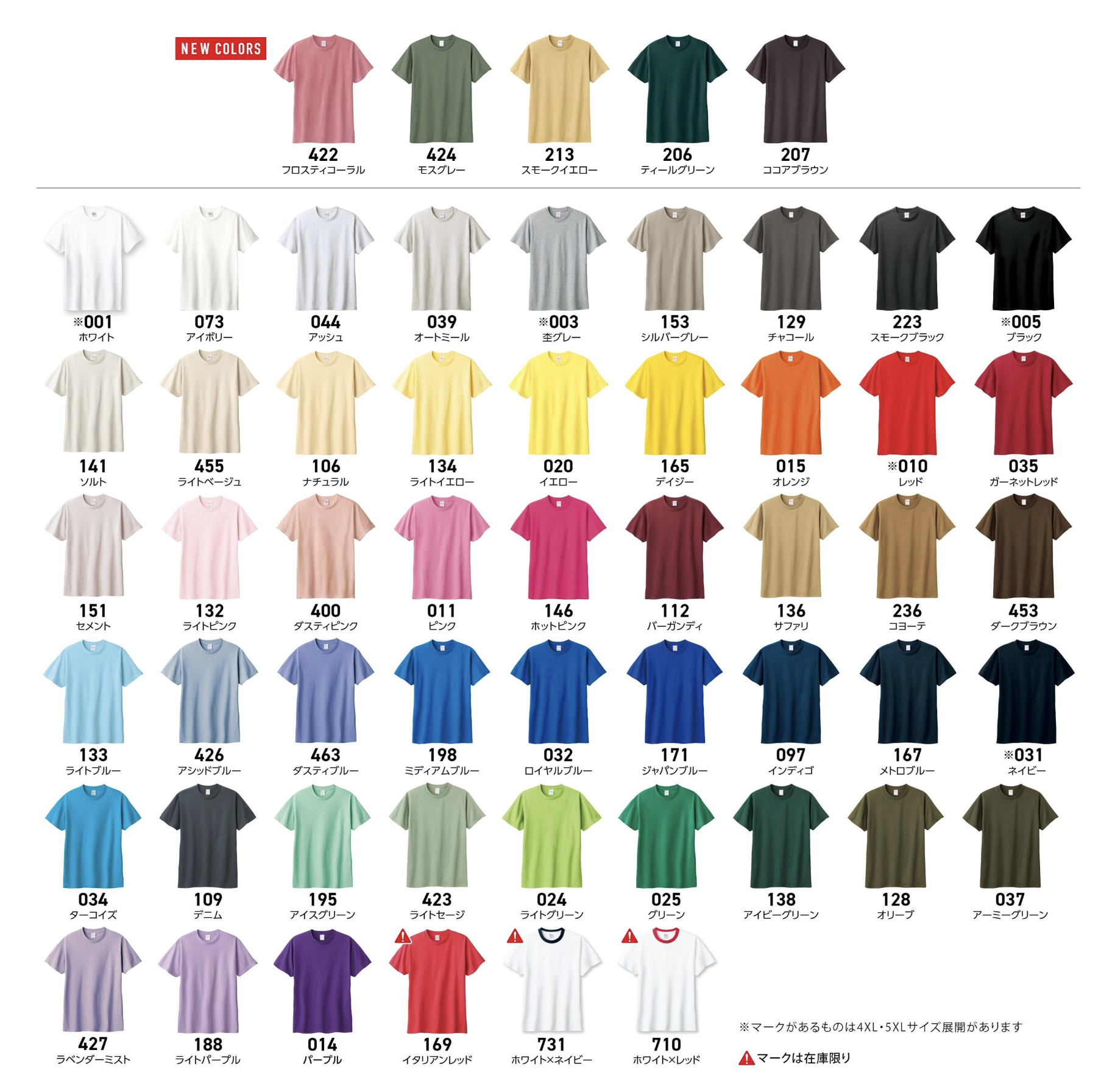 ※4XL〜5XLはホワイト・杢グレー・ブラック・レッド・ネイビーのみになります。